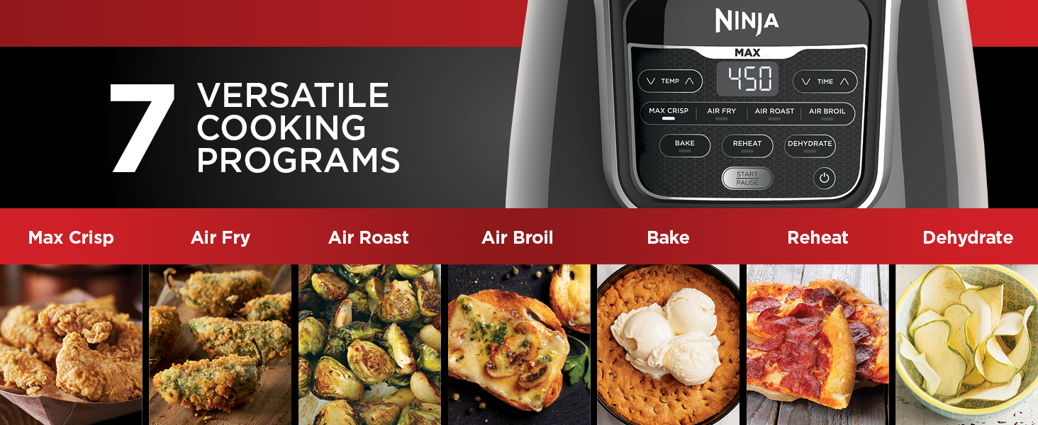 - 7-IN-1 FUNCTIONALITY: Includes 7 versatile cooking programs: Max Crisp, Air Fry, Air Roast, Air Broil, Bake, Reheat & Dehydrate.