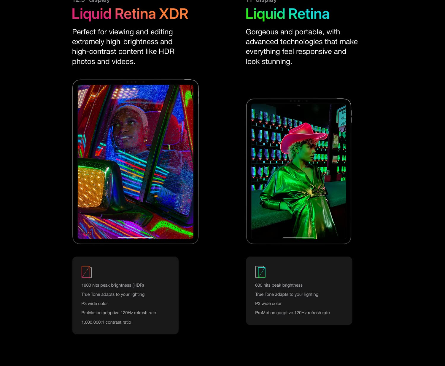 - Brilliant 12.9-inch Liquid Retina XDR display with ProMotion, True Tone, and P3 wide color